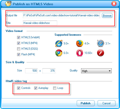 Step 5 : Publish Snorkeling Video Slideshow as Html5 Video File